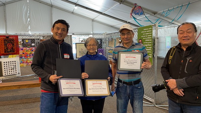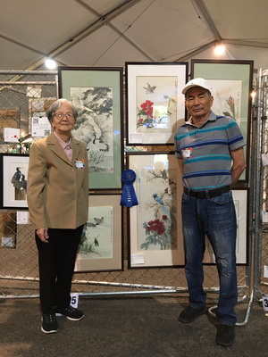 陳文仕版畫作品《雞群》獲得了本年度最高獎項「最佳作品獎」;李鐵油畫作品《夜行》獲得藍帶獎;湯桂芳工筆畫《雙壽圖》獲得藍帶獎。奧斯威戈湖市藝術節執行委員會副主席Jeanne Denton為他們頒發了獎狀及獎金。
